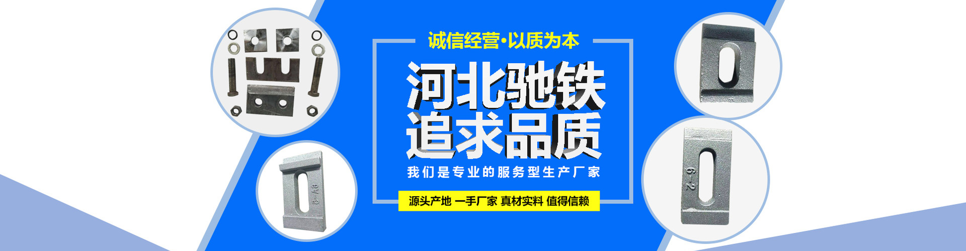 主要產品:鐵路配件、行車配件、工礦配件、魚尾板、道釘、壓軌器、軌道壓板、軌距拉桿、護軌扣板、T型螺栓、魚尾螺栓、彈條、軌距擋板